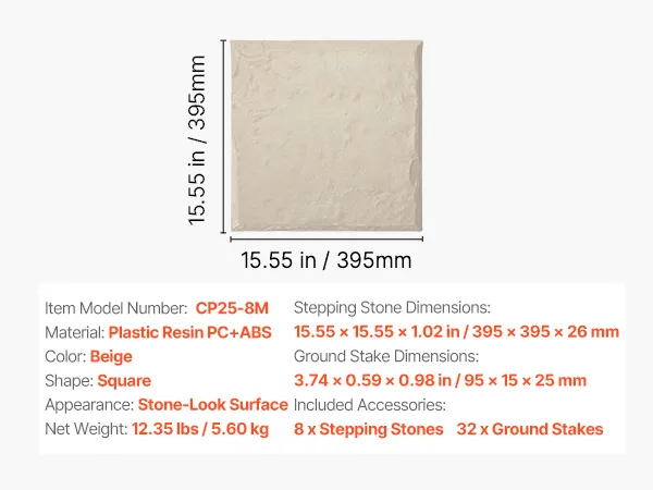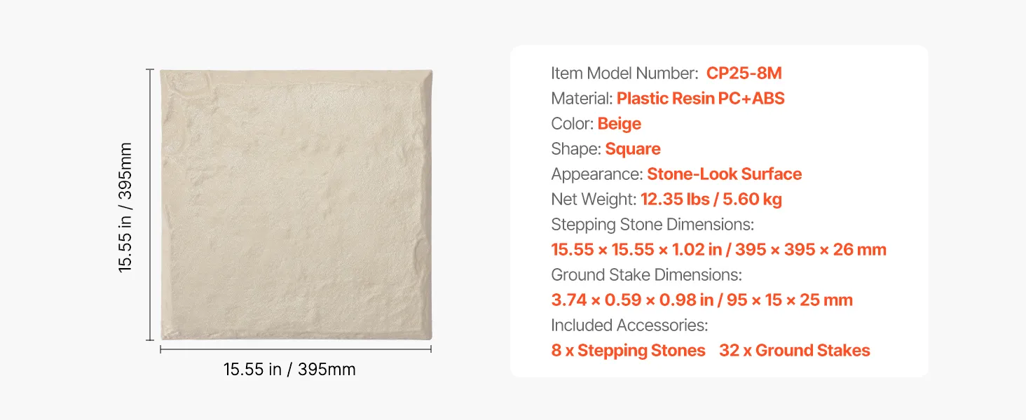 This 8-pcs garden stepping stones is made from weather-resistant PC and ABS resin, built to withstand sun, rain, and freezing temperatures without warping or fading. Each stepping stone includes 4 ground stakes and a reinforced base for extra stability—ideal for homes with kids and pets