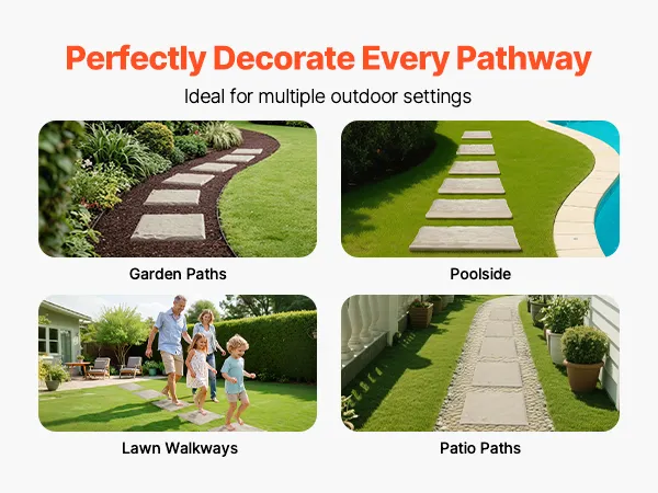 Comes with 8 stepping stones to suit a variety of layouts. Whether you're creating a garden path, poolside walkway, lawn trail, or patio route, these pathway stepping stones help you design your own natural-style outdoor pathway.