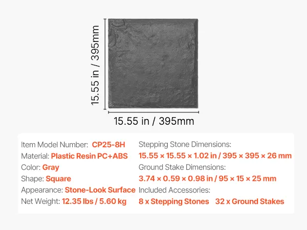 This 8-pcs garden stepping stones is made from weather-resistant PC and ABS resin, built to withstand sun, rain, and freezing temperatures without warping or fading. Each stepping stone includes 4 ground stakes and a reinforced base for extra stability—ideal for homes with kids and pets.