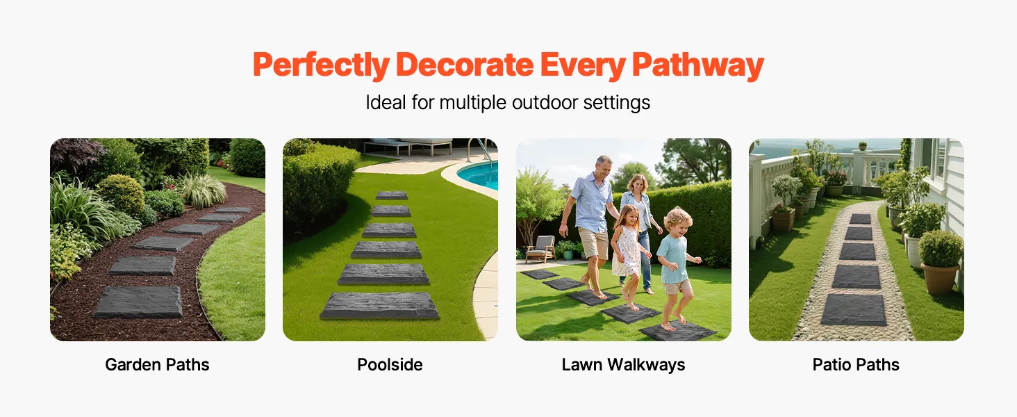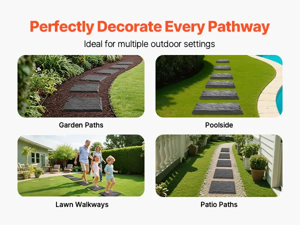 Comes with 8 stepping stones to suit a variety of layouts. Whether you're creating a garden path, poolside walkway, lawn trail, or patio route, these pathway stepping stones help you design your own natural-style outdoor pathway.