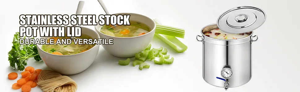 Here we offer you one superior stockpot with a lid which is ideal for slow simmer or rapid boil. This commercial-grade stockpot is versatile, easy to clean, and is an essential staple for any kitchen.
