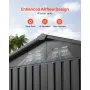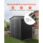 VEVOR 83 cu.ft. metal storage shed (73.23 x 47.64 x 72.50 inch / 1860 x 1210 x 1841mm) is ideal for storing garden tools and more. Made from galvanized steel, it's durable, waterproof, and sunproof. The peak roof prevents snow buildup, supports up to 30kg/m². Includes ventilation and lockable doors.