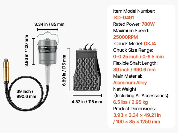 This VEVOR 780W flex shaft grinder delivers speeds up to 25000 RPM and comes with a rich accessory set for sanding, grinding, cutting, and polishing tasks. The high-precision 3-jaw chuck and 39-inch extended flexible shaft add convenience and flexibility to every project.