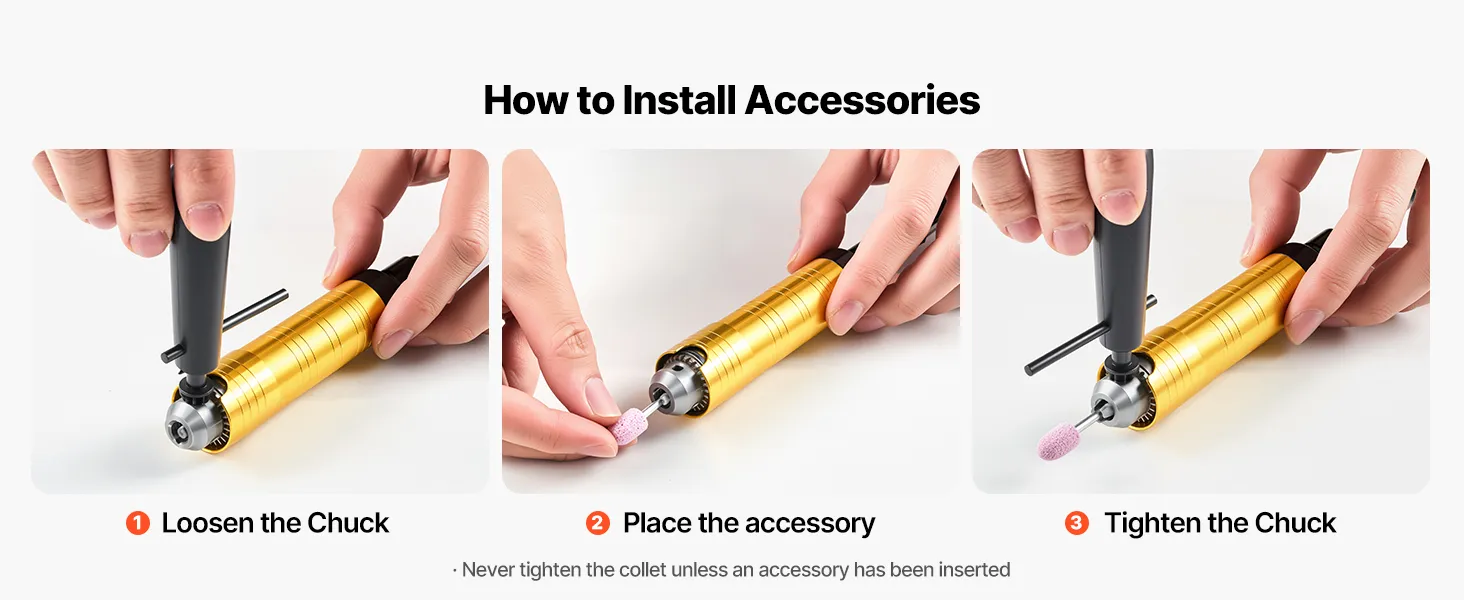 Complete Accessories: Comes with 9 grinding stones, 11 sanding bands, 36 sanding discs, 8 wool felts, 1 millstone, 36 cutting discs, 5 mandrels, 1 wrench, 1 accessory storage holder, along with 1 chuck key, 2 carbon brushes and 1 spare inner flex shaft cable