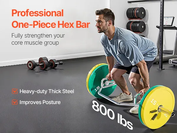 Heavy-Duty Thick Steel: This hex bar is made from heavy-duty steel and supports up to 800 lbs / 360 kg for moderate to heavy strength training. The electrophoretic finish is corrosion-resistant, providing years of support