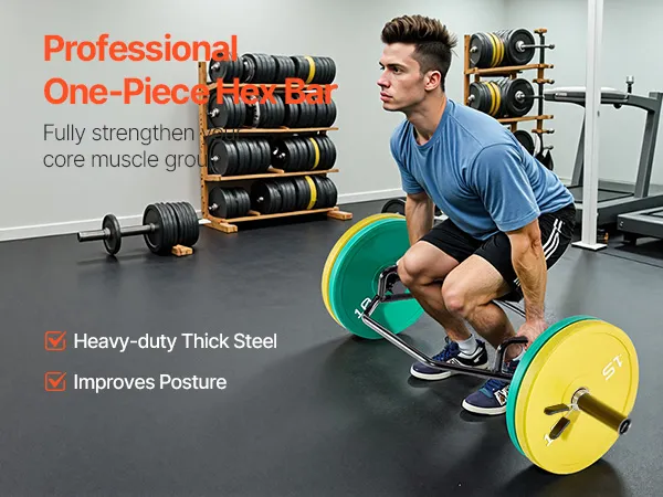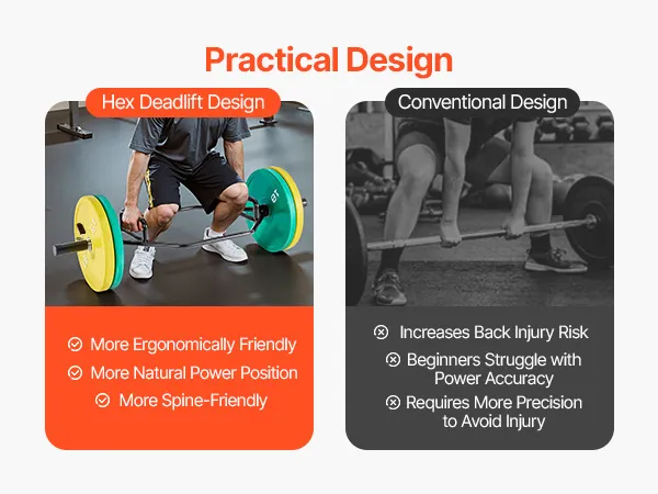 Humanized Design: Ergonomic knurled handles with a fine non-slip texture give you a secure, comfortable grip during squats, deadlifts, shrugs, and carries. The hex shape guides your lifting posture and is easier on your lower back