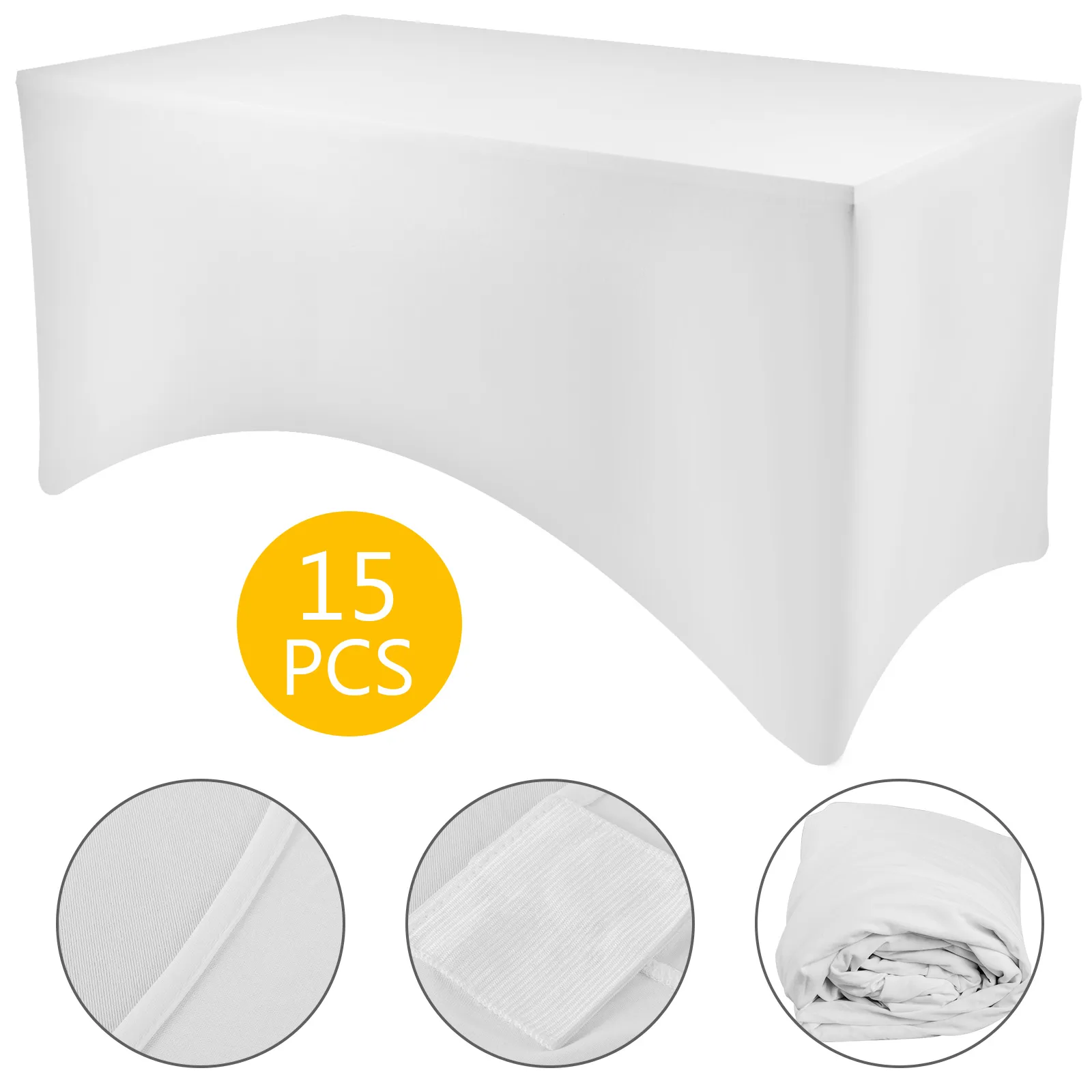 This listing is about 15pcs Stretch Spandex Table Covers. It looks elegant and fancy with white color and only takes a few seconds to make your tables professional and neat. It is perfect for wedding, banquet, party, meeting, dinner, celebrations etc.