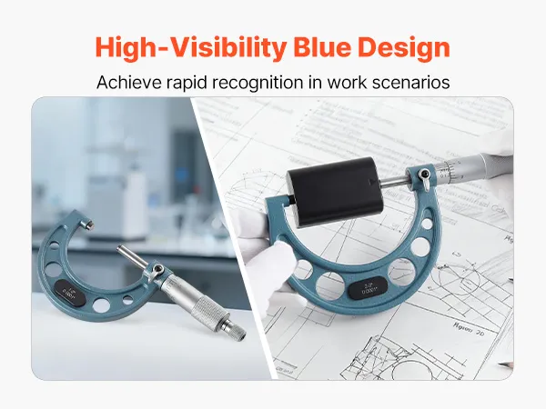Built with metal, this micrometer set features a blue finish that enhances both appearance and visibility in the workspace, helping you quickly identify the tool, improve efficiency, and extend its service life.