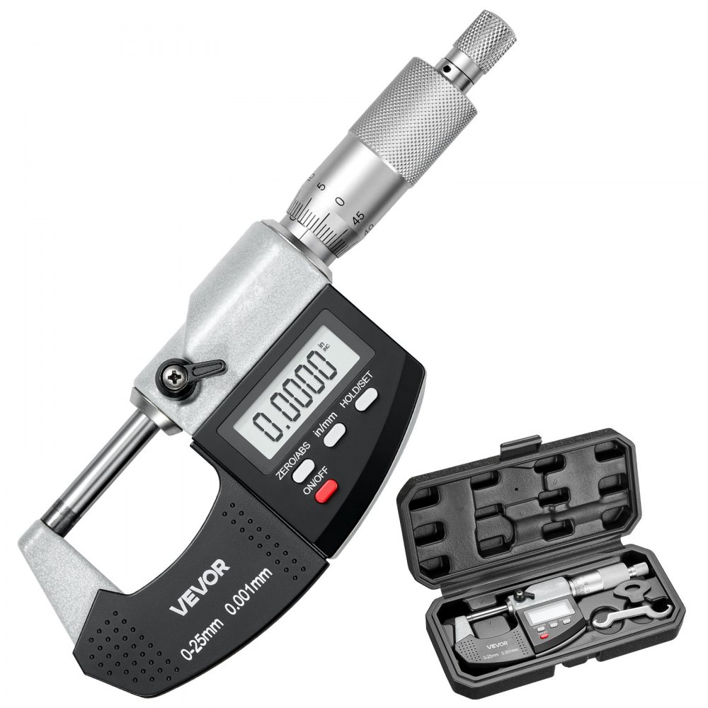 VEVOR Micrometer Set, Digital Outside Micrometer 0-25.4 mm Measuring Range, 0.001 mm Resolution, Ultra-Precision Accuracy, LCD Screen, in/mm Switch, Carbide Tip, with Protective Case