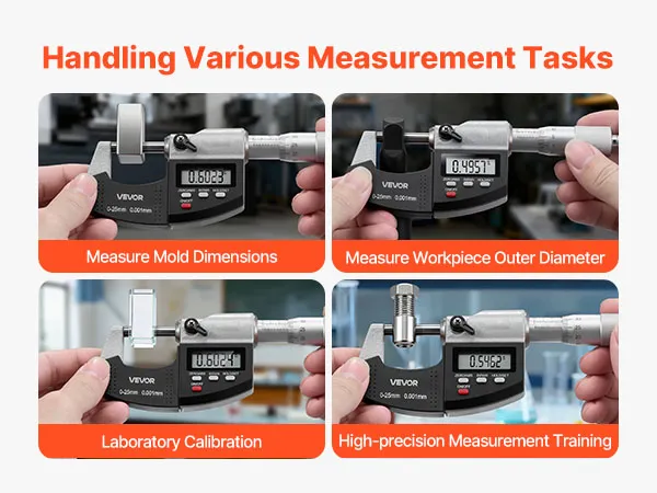 Versatile for Multiple Tasks: This micrometer measuring tool features a solid metal frame for wear resistance and lasting stability. Ideal for measuring outer diameters of pipes, metal sheets, and other parts in machining or precision work