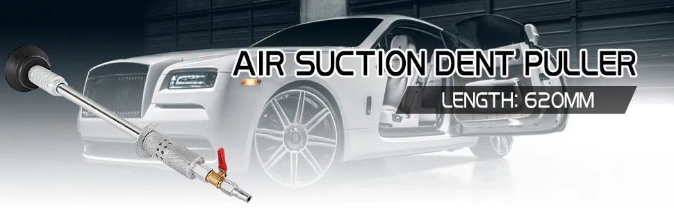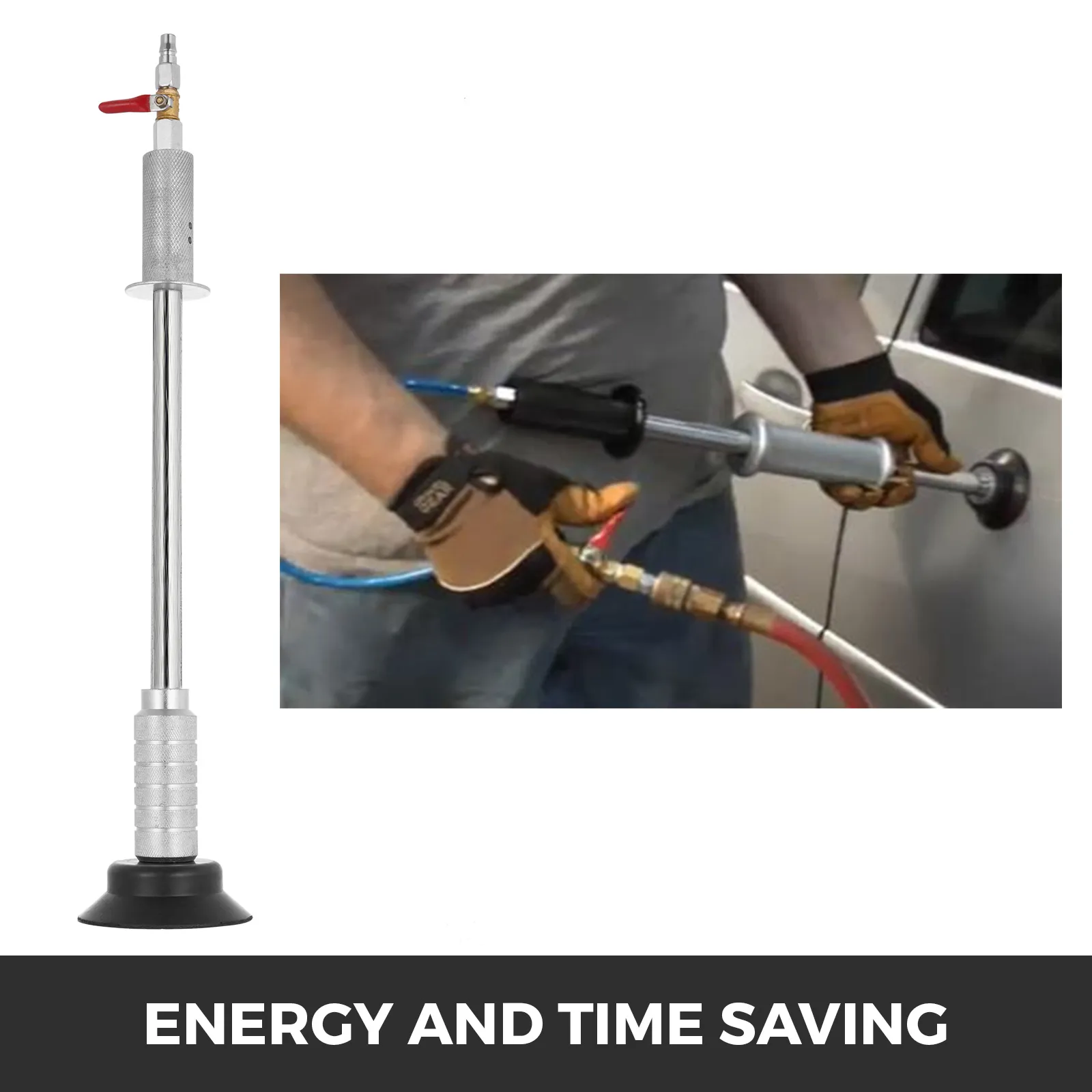 The pneumatic dent puller, with pneumatic control can creates a super-strong vacuum. It is an easy tool for pulling out dents from vehicles, and pull most dents out of panels without damaging paint. The air compressor is required, no drilling, welding or sanding required. It is a super-strong vacuum create by pneumatic control.