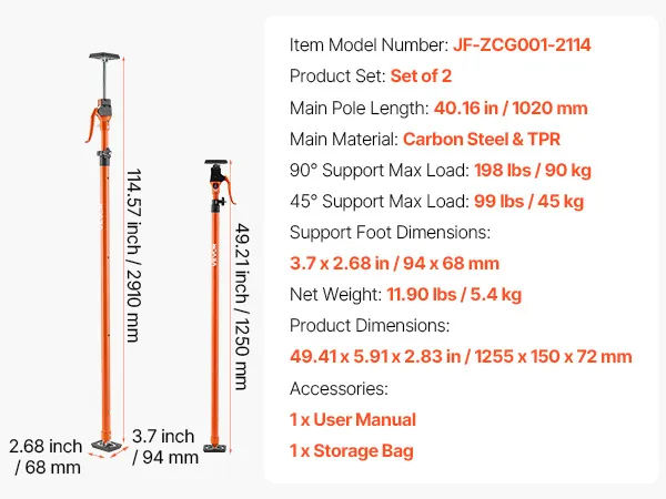 This 2-pack cabinet jack support pole set delivers efficient load support for jobsites, warehouses, and home projects. With a 198 lbs load capacity, adjustable height, and secure lock-in design, it's ideal for lifting or holding cabinets, drywall, and more.