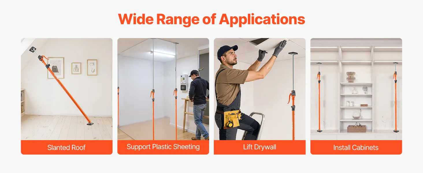 Fit for drywall bracing, plastic sheeting, cabinet installation, and panel holding. Reliable support boosts efficiency in professional construction and home improvement projects.