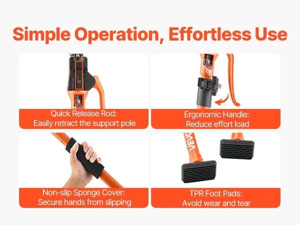 Secure & Easy to Use: Assembles in minutes with the included manual. Triple-lock system of the cabinet jack avoids slipping under load. Features a comfy grip handle, non-slip foam, quick-release rod, and anti-slip top plate
