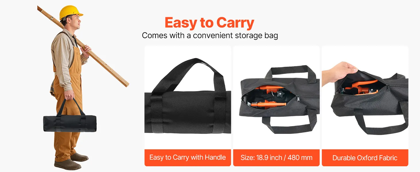Comes with a durable carry bag for easy transport. Whether moving between floors on-site or responding to quick jobs, this 3rd hand support system keeps you ready. A must-have for pros and DIYers alike.