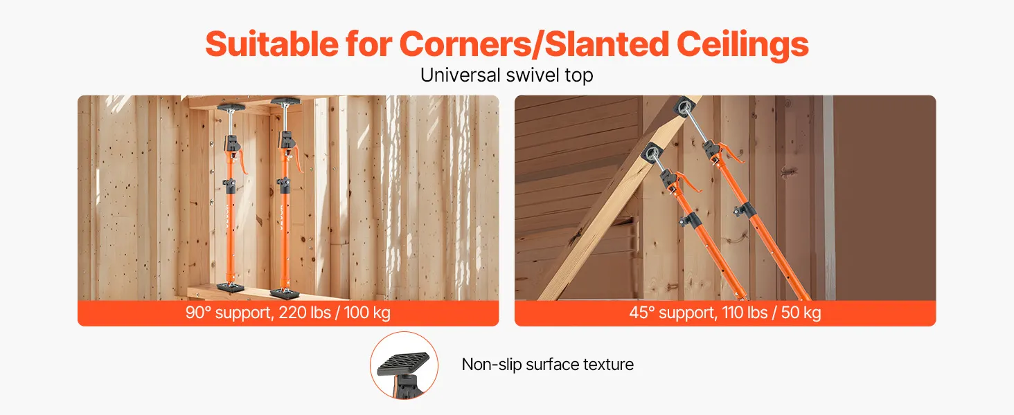 Strong 220 lbs Load Capacity: Each telescoping support pole holds up to 220 lbs, providing steady support for drywall, shelving, or woodworking. Ideal for construction sites, temporary bracing, or home renovation