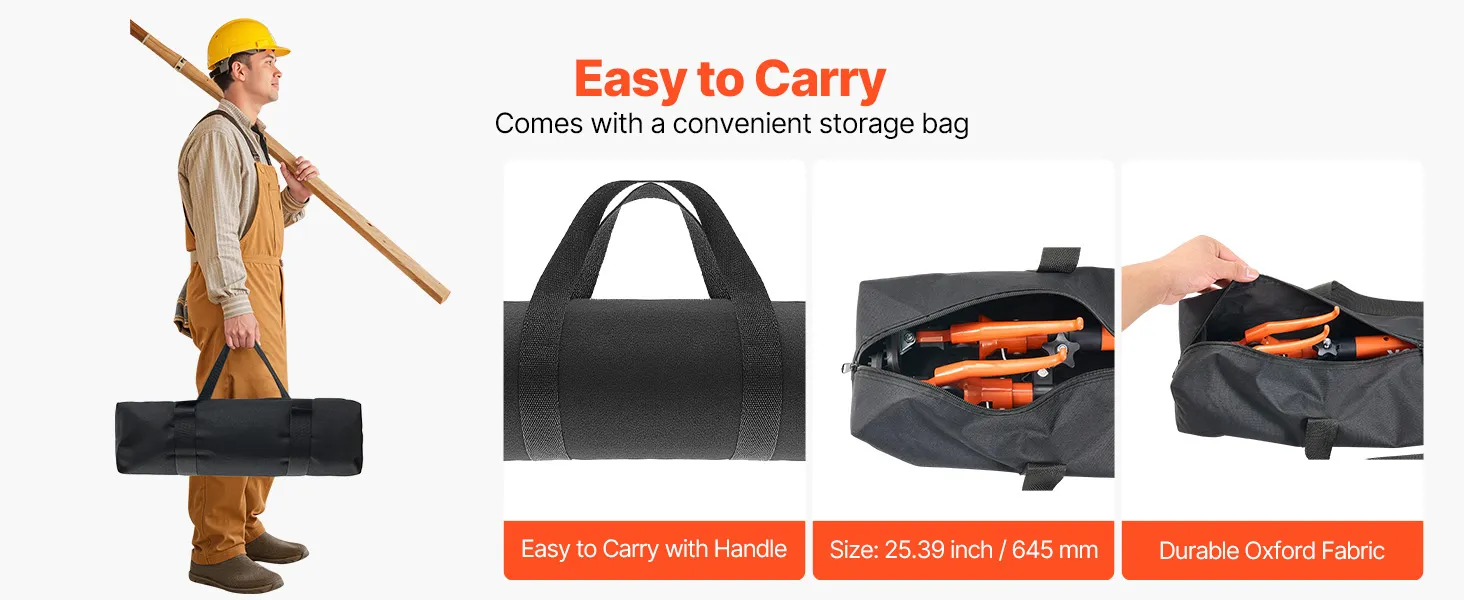 Comes with a durable carry bag for easy transport. Whether moving between floors on-site or responding to quick jobs, this 3rd hand support system keeps you ready. A must-have for pros and DIYers alike.