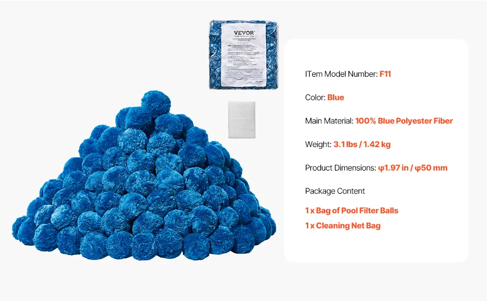 Premium Material: Crafted from 100% blue polyester fiber, our pool filter balls for sand filter provide high filtration strength, fast filtration speed, long service life, and minimal wear. Lightweight and reusable, they are the ideal replacement for traditional sand filters. Enjoy superior filtration performance with every use.