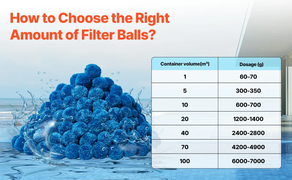 With superior filtration accuracy, strong adsorption, and fast filtration speed, our pool filter balls provide impressive performance. Just 700 g of filter balls can replace 25 kg of traditional sand, making it an efficient and space-saving replacement.