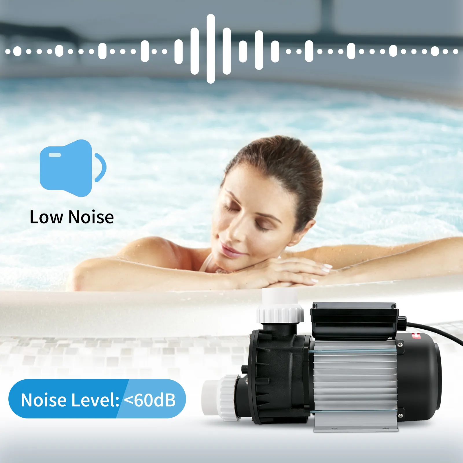 With a noise level of less than 60dB, our hot tub motor will not disturb you when working. You can enjoy a relaxing spa, peaceful swimming, or leisurely floating.