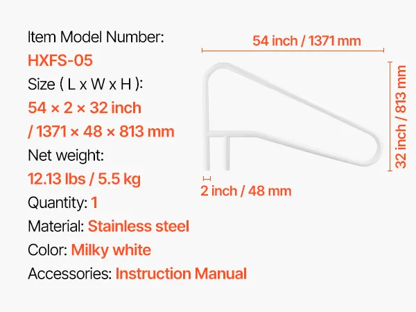 VEVOR Pool Rail, 137.1 x 81.3 cm Pool Handrail, 100kg Load Capacity Heavy Duty Stainless Steel Swimming Handrail, Seamless Welding, Recessed or Base Mount, for Poolside, Water Parks, Spa Centers
