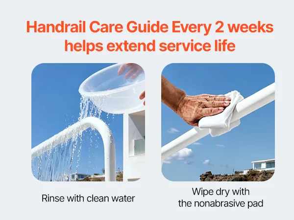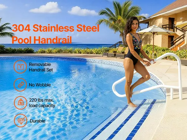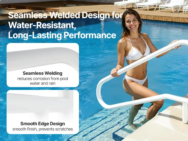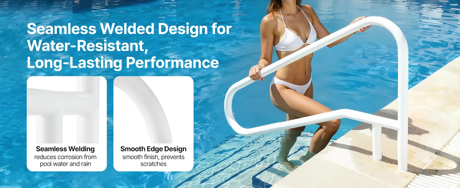 Suitable for Saltwater and Chlorine Pools: The adjustable pool handrail has a polymer-coated surface that corrosion-resistant in salt or chlorine pools. Stainless steel core provides strong support and resists deformation. Rinse with fresh water after use