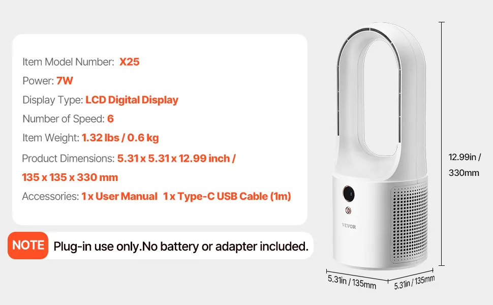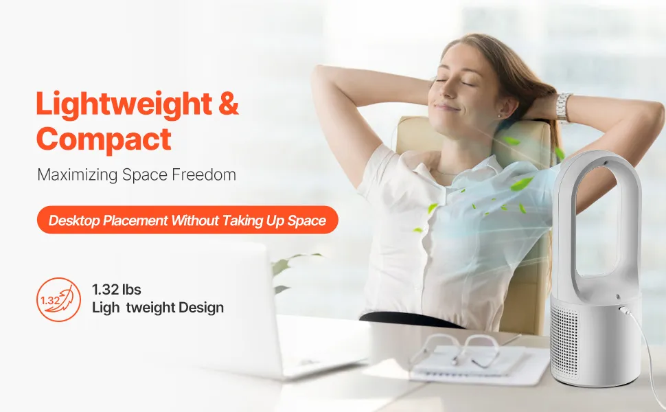 Compact and versatile, this portable bladeless fan fits effortlessly into various space. Its cost-effective, ready-to-use design requires no assembly, adding flexibility to your home life.
