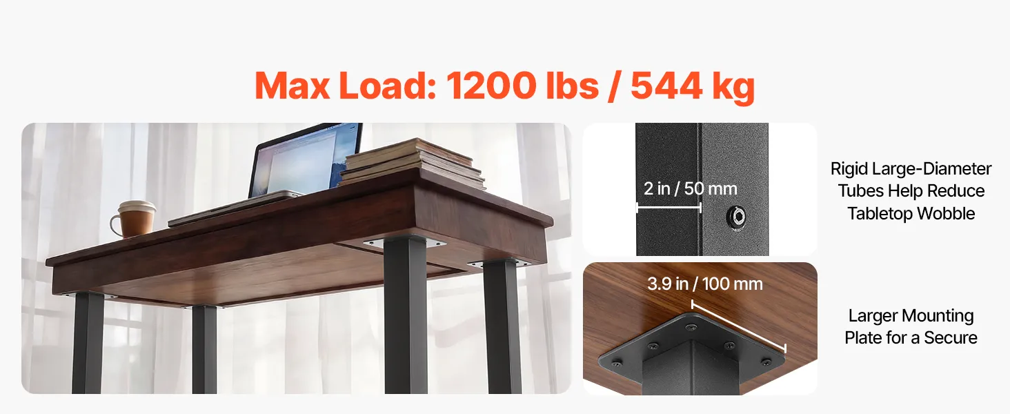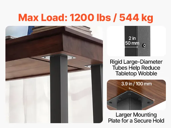 Exceptional Load Capacity: Designed to support up to 1200 lbs / 544 kg, these table legs provide reliable strength for heavy tabletops or large storage builds, helping keep your table stable and maintain its shape over time