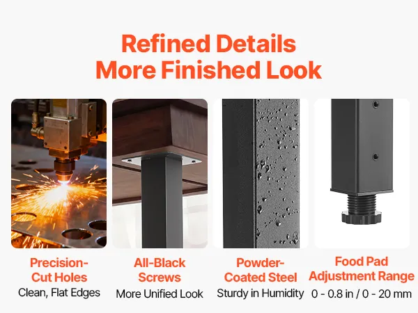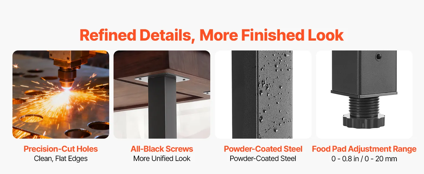 Engineered for Durability: Constructed from high-strength carbon steel, each table leg features a powder-coated surface that resists fingerprints and cleans easily. Features 0-0.8 in / 0-20 mm adjustable leveling feet to help you easily level the table