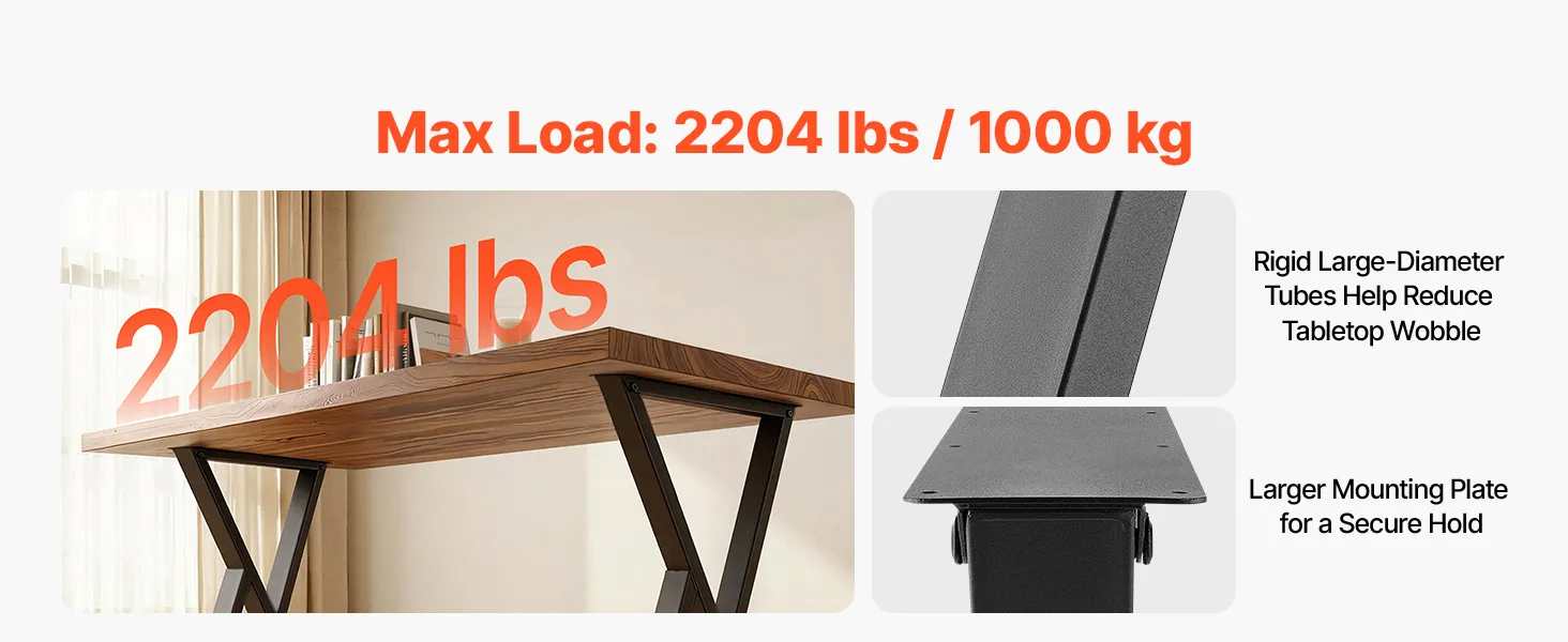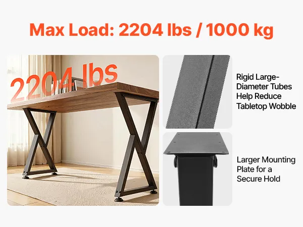 Exceptional Load Capacity: Supports up to 2204 lbs / 1000 kg, these table legs can hold heavy tabletops or even build a medium to large dining table for 6-8 people. Strong support helps keep the table stable and withstands to deformation over time