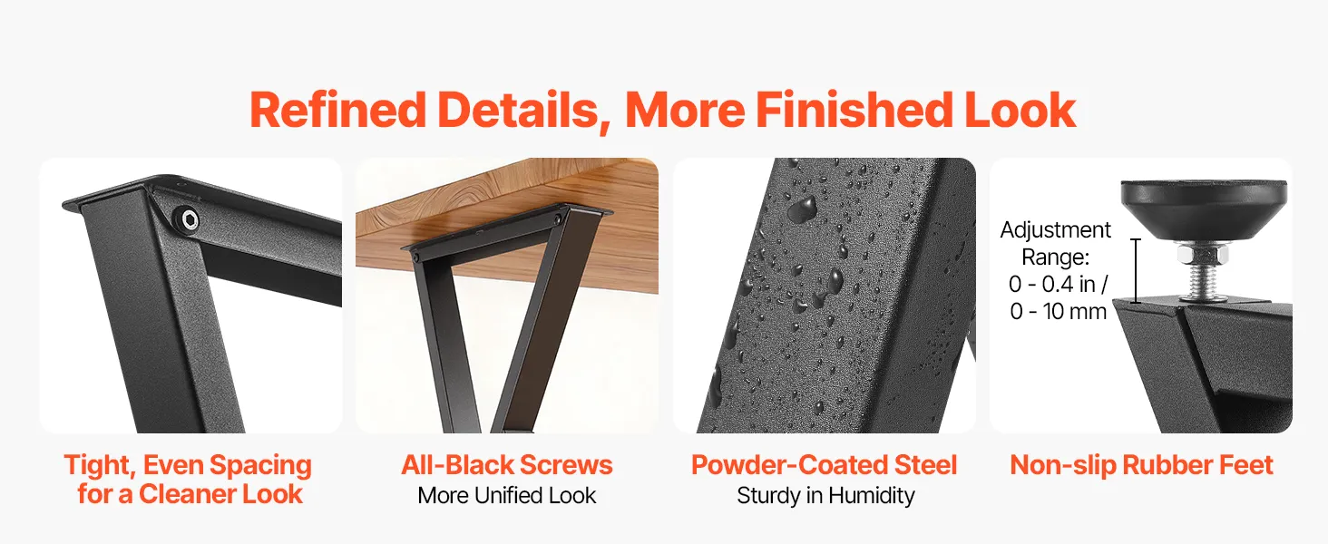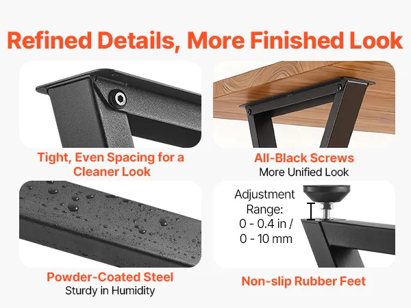 Engineered for Durability: Constructed from high-strength carbon steel, each table leg features a powder-coated surface that resists fingerprints and cleans easily. Features 0-0.4 in / 0-10 mm adjustable leveling feet to help you easily level the table