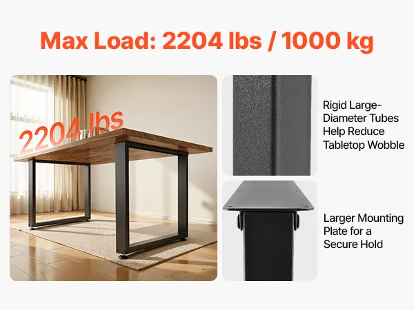 Exceptional Load Capacity: Supports up to 2204 lbs / 1000 kg, these table legs can hold heavy tabletops or even build a medium to large dining table for 6-8 people. Strong support helps keep the table stable and withstands to deformation over time