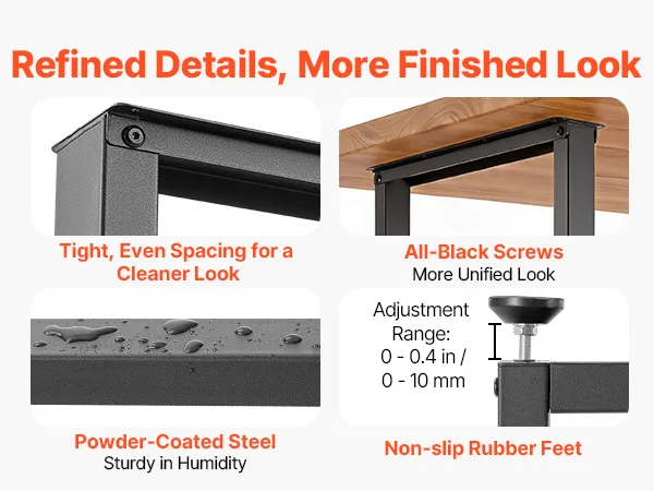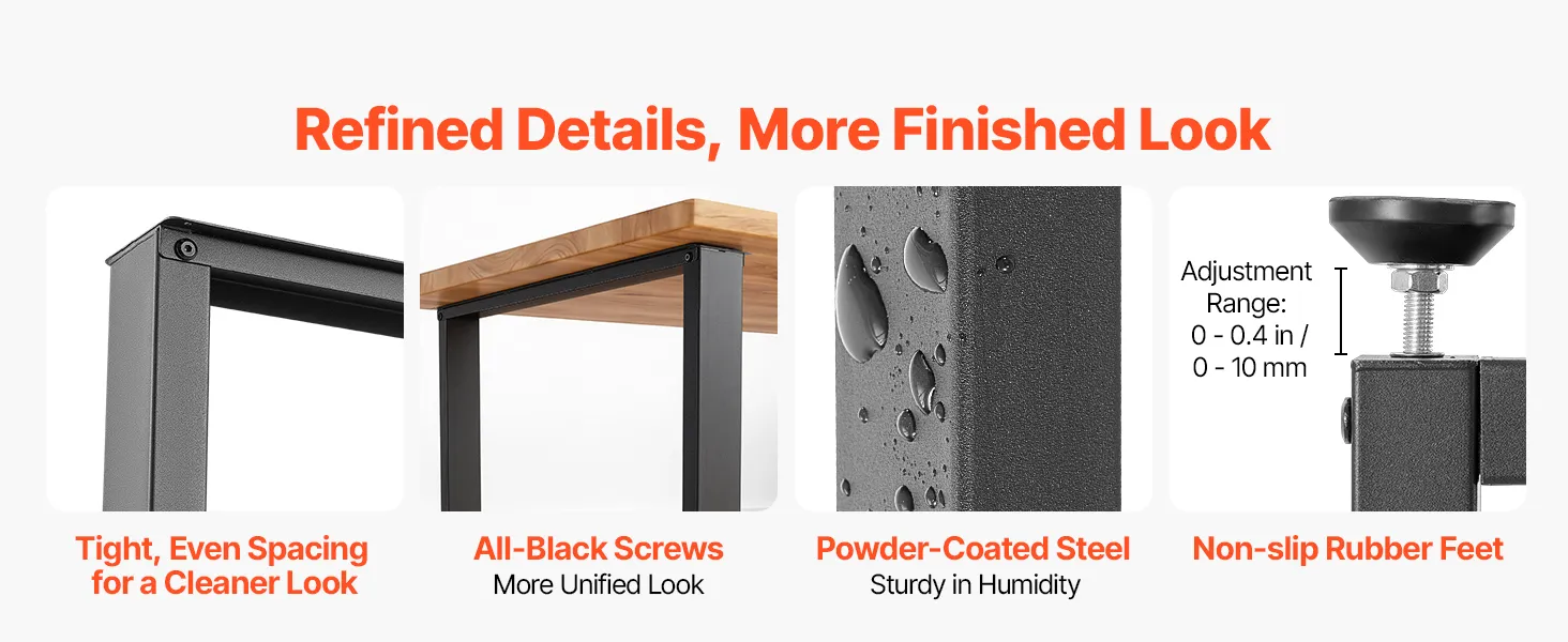 Engineered for Durability: Constructed from high-strength carbon steel, each table leg features a powder-coated surface that resists fingerprints and cleans easily. Features 0-0.4 in / 0-10 mm adjustable leveling feet to help you easily level the table