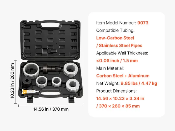 Suitable for low-carbon steel and stainless steel pipes with a wall thickness of up to 0.06 inch, ensuring accurate and reliable expansion.