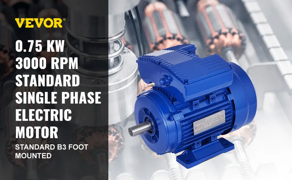 The listing is about single phase electric motor 0.75 KW 3000 RPM standard motor B3 foot mounted. These single-phase electric motors are designed, manufactured, and tested to meet the latest European and international standards and give maximum operating performance and reliability.