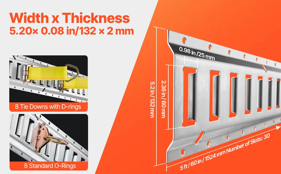Tailored Space: With 30 versatile slots of each trailer tie down rail, 8 O-rings, 8 tie-offs with D-ring, and adjustable length design, customization is at your fingertips. It provides you with highly customizable transportation and fixation solutions. Create the perfect setup for your cargo, maximizing every inch of space with ease.