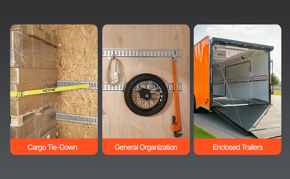 Whether you need to mount them on the wall or floor or secure them with bolts, our trailer tie-down rails adapt to any scenario with ease. From garages to utility rooms, they're the perfect solution for your storage needs.