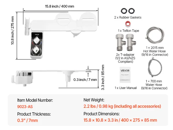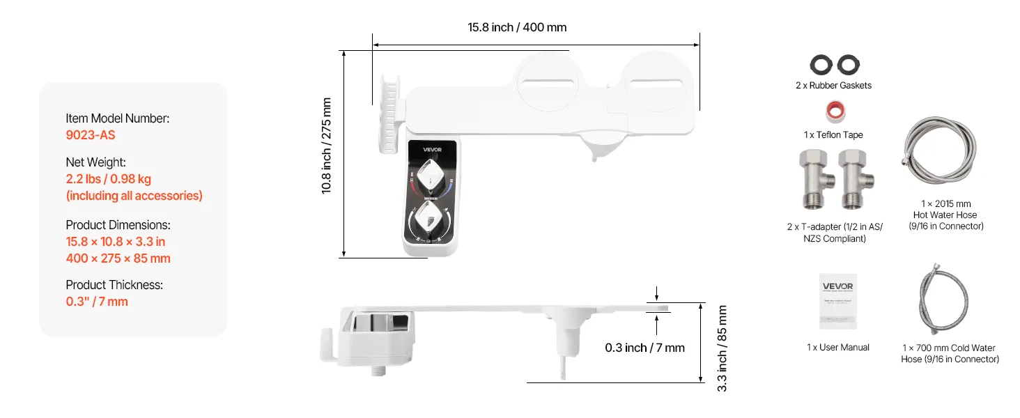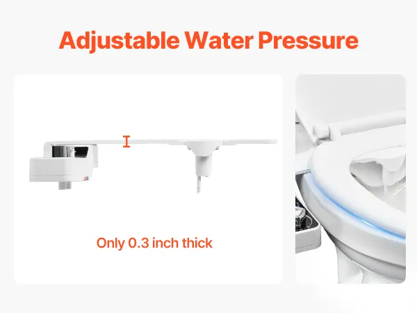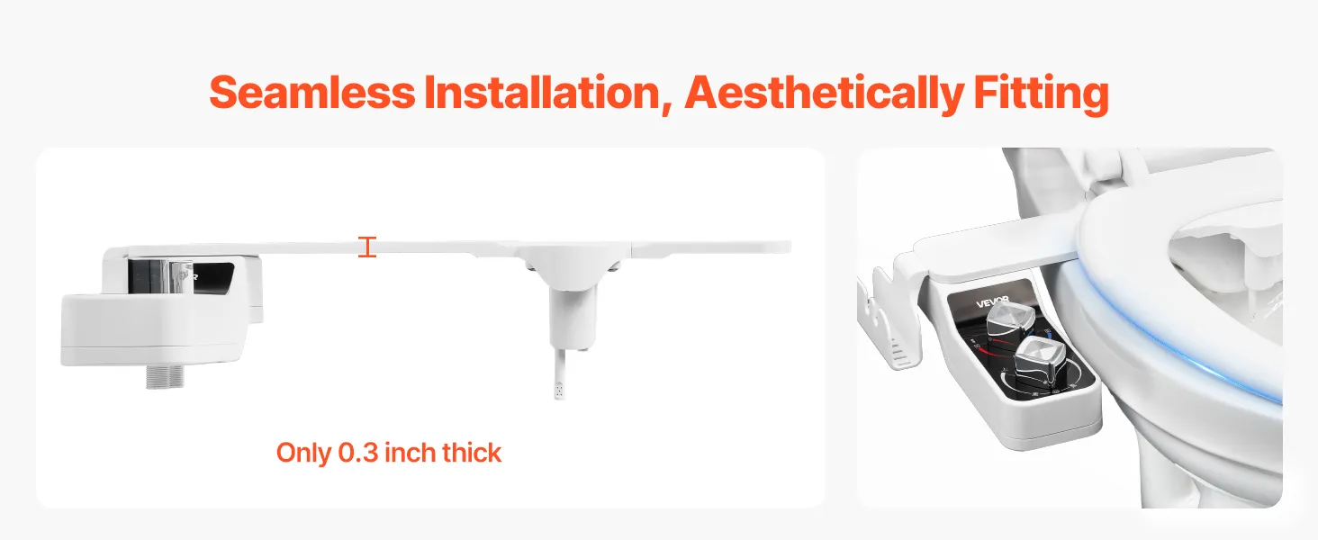 Seamless Installation: With a sleek 0.3-inch thickness, this bidet attachment for toilet installs flush without gaps, blending easily into most toilets and complementing modern bathroom styles.