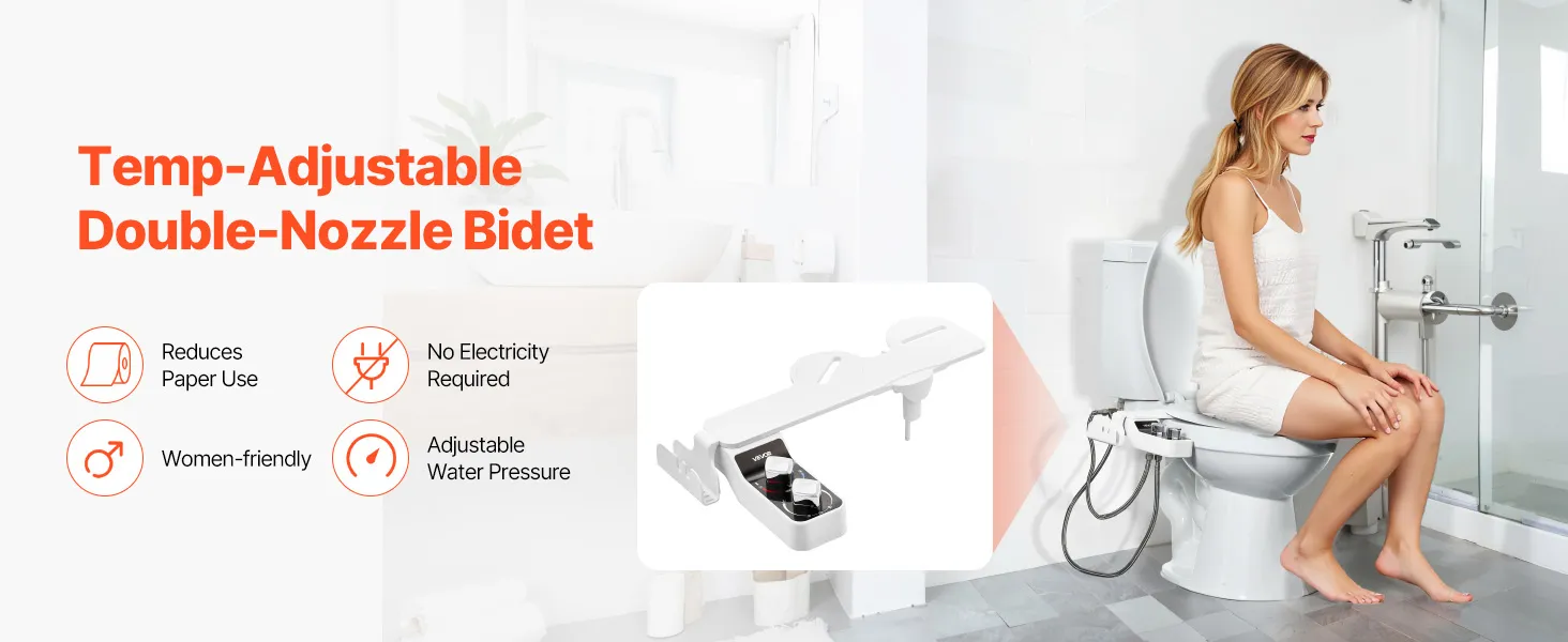VEVOR Bidet Attachment for Toilet, Hot & Cold Non-Electric Water Sprayer - Dual Retractable Nozzles, Adjustable Water Pressure, 0.3’’ Ultra Thin Bidet Toilet Seat Attachment for Rear and Feminine Wash