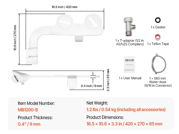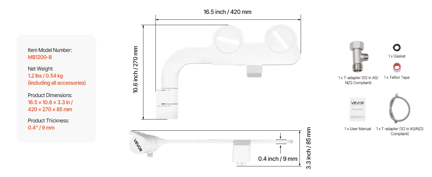 Easy Installation: This bidet attachment for toilet is crafted from durable ABS, a solid brass T-adapter, and a stainless steel hose. Corrosion-resistant and compatible with most standard toilets—install in minutes without replacing your setup.