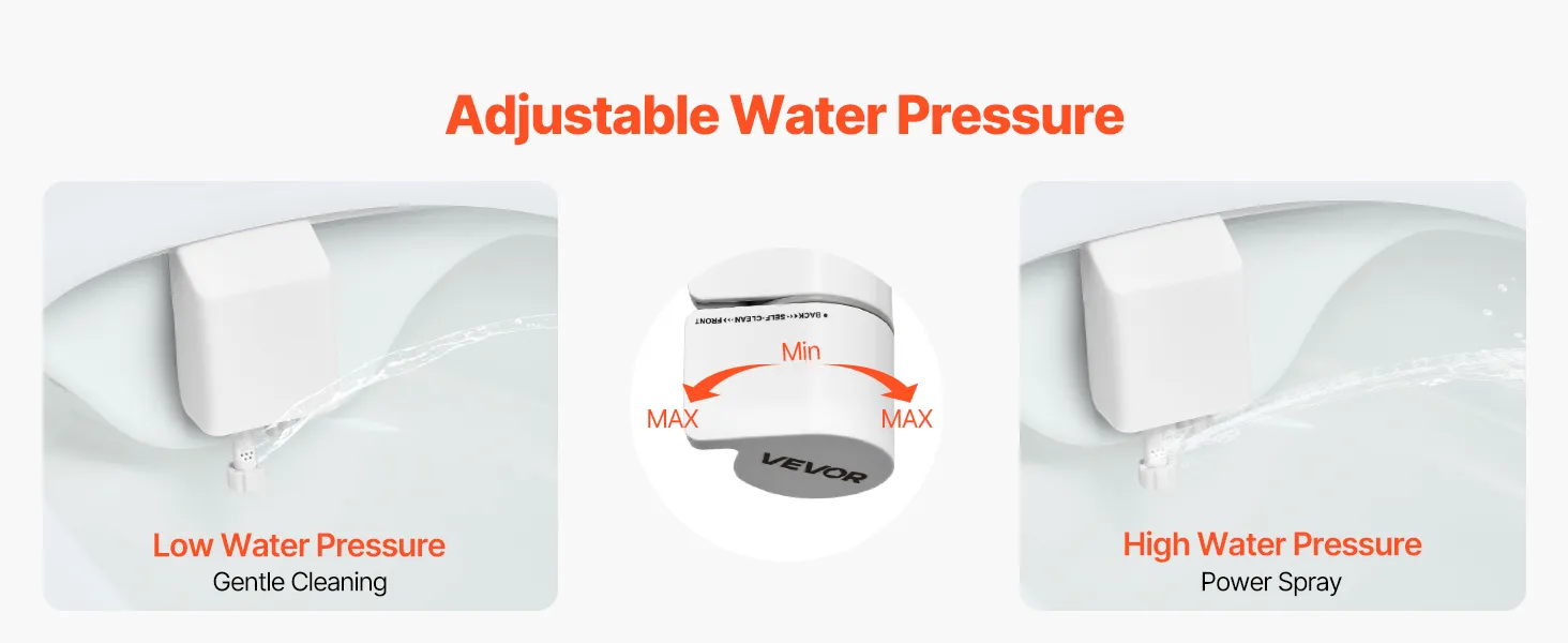 Adjustable Water Pressure: This toilet seat bidet attachment lets you adjust the spray from soft to strong with a simple twist of the knob, making it easy and comfortable for both kids and seniors.