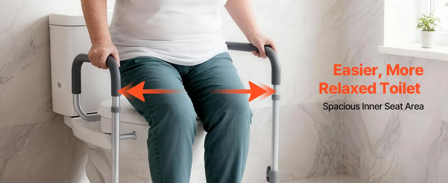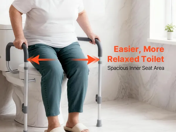 Our toilet riser features adjustable armrest width, which ensures ample space for comfortable sitting and standing, allowing users to move easily without being cramped during use.