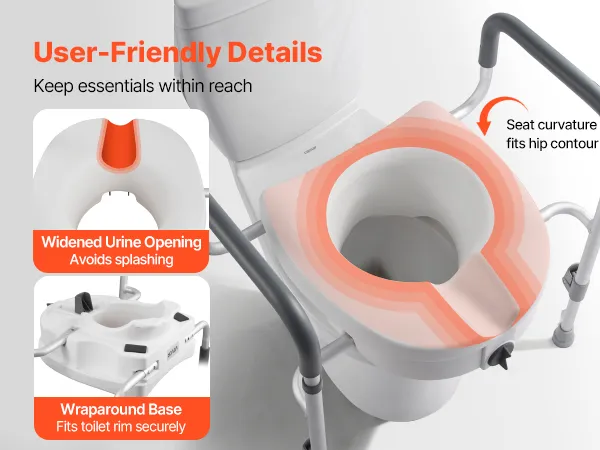 Ergonomic Design: This elevated toilet seat features an ergonomic design with a contoured inner ring for stable and comfortable sitting. The wraparound base fits securely onto your toilet, minimizing movement and wobbling for a more comfortable experience