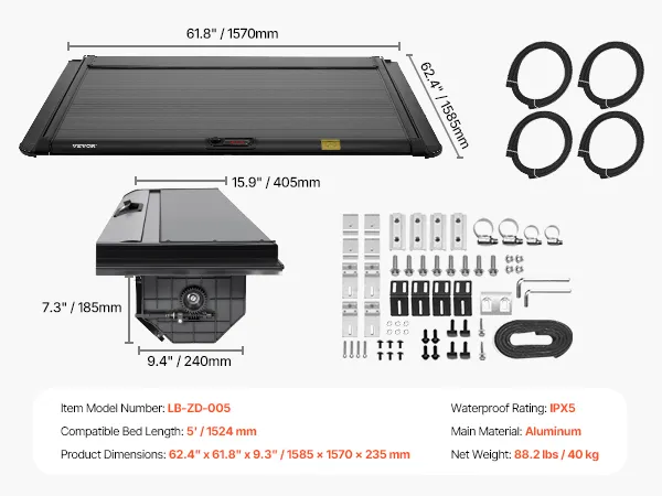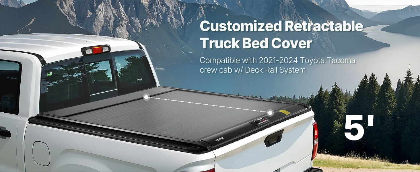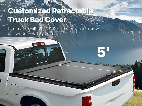 Fully Fit: This retractable truck bed cover is custom-designed for the 2021-2024 Toyota Tacoma crew cab with a Deck Rail System and a 5' bed. Please measure your bed before choosing to ensure compatibility with your vehicle.