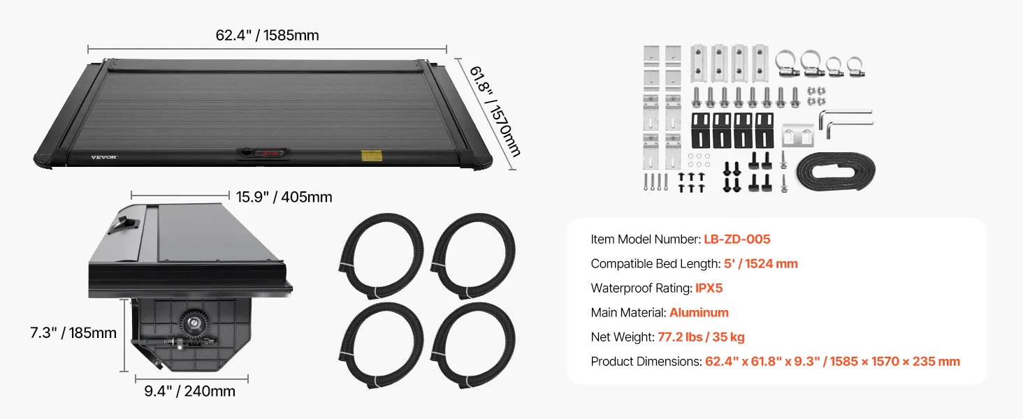 Waterproof & Weatherproof: This truck bed cover is made of durable aluminum panels, with sealed edges and drainage tubes to guide accumulated rainwater out. It effectively avoids rain and dirt from entering the bed in various weather conditions.