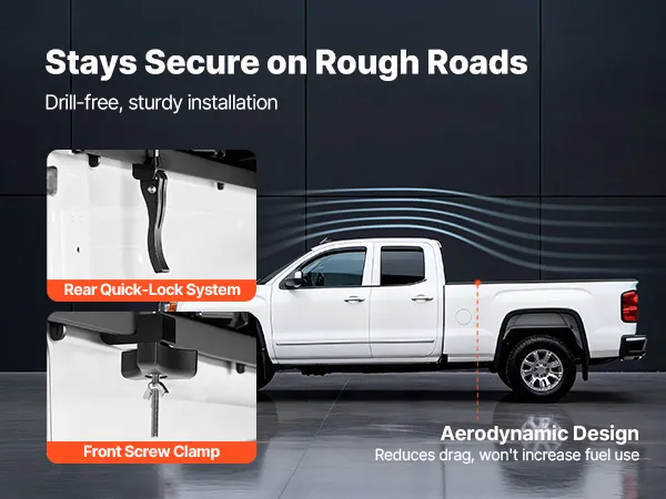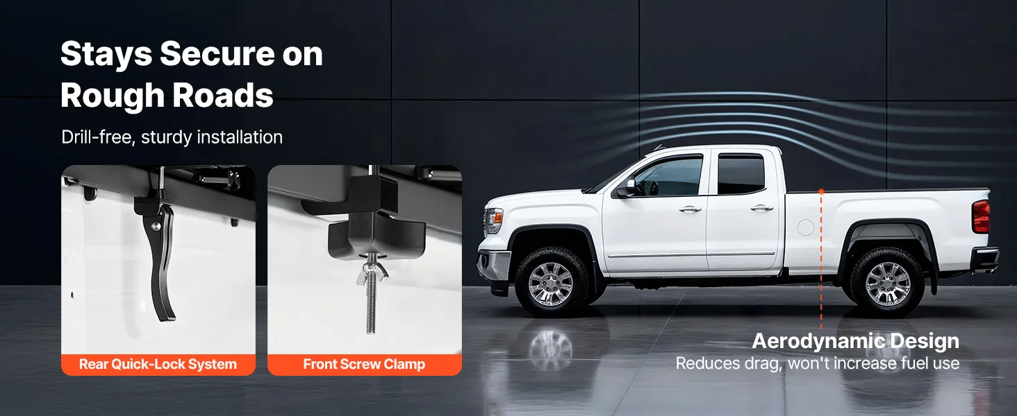 No-Drill Installation: Equipped with quick-lock clamps and screw fasteners, our tonneau cover installs easily without drilling. The clamps have passed 5,000+ open/close tests and withstand -40℃ to 80℃, ensuring long-lasting durability without cracking