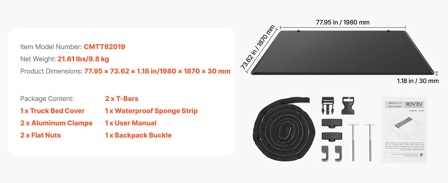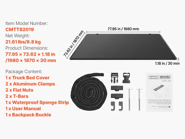 This truck bed tonneau cover is precisely contoured for your vehicle, ensuring a stable, no-looseness fit. It seals tightly to block dust and water, enhancing both appearance and practicality with no modifications required. Note: Confirm your truck bed length and model before purchase.