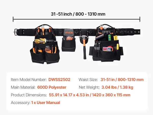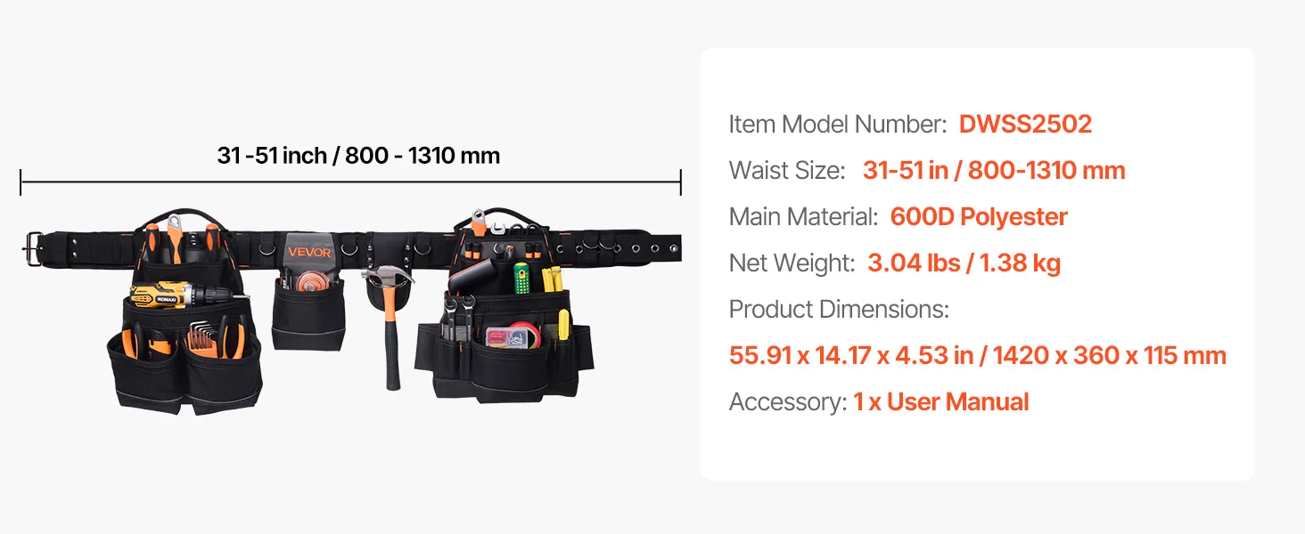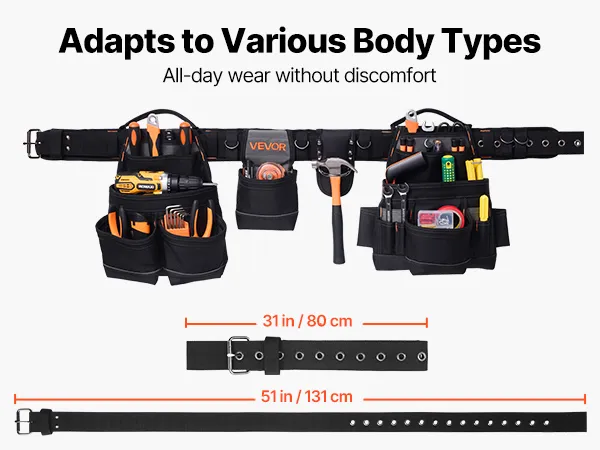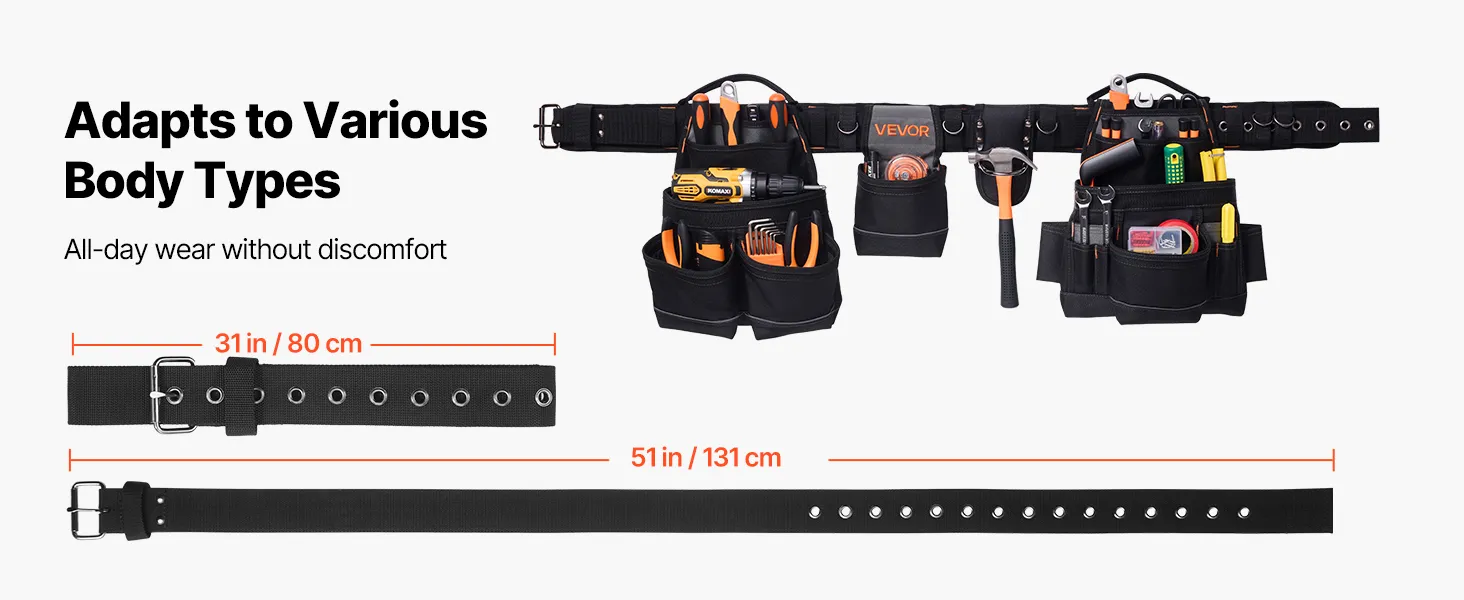 Versatile Use: Ideal for carpenters, electricians, construction workers, and DIYers, this construction tool belt keeps your tools organized and hands-free. Suitable for heavy-duty work or home repairs, it delivers efficient, all-in-one functionality