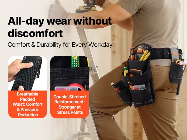Ergonomic Comfort Waist: Our wide, padded framing tool belt evenly distributes weight and reduces strain. It remains secure and comfortable during long, intense work, avoiding constriction and fatigue, helping workers focus and boosting efficiency