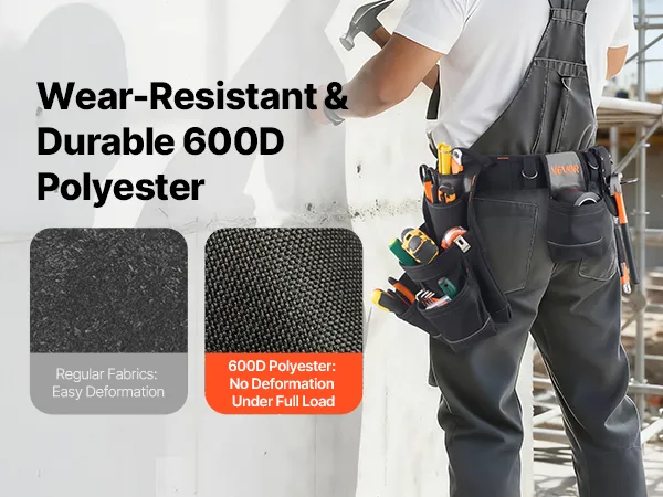Crafted from 600D polyester, this framers tool belt resists wear and tearing for long-lasting use. It securely holds nails and power tools without deforming or damaging, ensuring stable, reliable performance.